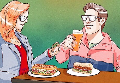 Experience the après-ski scene. There is no better way to unwind after a long day of skiing than by relaxing at a bar or restaurant directly off the slopes. Make sure to store your gear safely (in a locker, your car, or your hotel room), then find a busy bar or restaurant and unwind with a beverage and some warm food. Try sharing a table with strangers to make some new ski friends. Don’t forget that skiing is an active sport and can be dehydrating. Use this chance to catch up on water intake, especially if you’re partaking in alcoholic beverages.