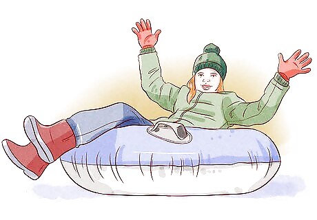Go snow tubing or sledding. Snow tubing provides the same thrill of downhill skiing without your legs having to work for the experience! Tubing is a super fun activity for all ages. Most ski resorts will have a tubing area on site or nearby. You will be hard pressed to find a ski town that doesn’t offer tubing within a short distance. Try tubing at night. The dark tubing course will be lit up by large lights, making the ride down the hill more exhilarating.