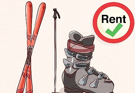 Decide if you want to rent equipment or bring your own. Deciding whether or not to bring your own gear depends on a few factors. If you don’t own gear, then this is an easy decision. There is nothing wrong with renting, and you can often demo high-performance equipment through ski rental shops, allowing you to try the season’s newest and best models. If you own gear, evaluate if it is worth the hassle of transporting it. If you’re driving, it is easy to throw it in the car. When flying, it can be expensive and an inconvenience to check gear, especially when packing gear for the whole family. It may be cheaper to rent equipment when you get there, versus paying exorbitant airline fees. It is easier to transport ski boots than skis. The ski boots you own will be more comfortable than a rental boot, so you could bring your boots and rent skis when you get there. Any ski tech can adjust rental skis to your boots for a small fee.