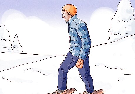 Try cross-country skiing or snowshoeing. Take a break from downhill skiing to explore Colorado’s stunning winter scenery. Both cross-country skiing and snowshoeing provide a fun, low-impact way to enjoy the winter landscape. Most resorts and ski towns have designated trails for cross-country skiing and snowshoeing. Your resort should offer a shop to rent the proper equipment; check with the concierge for details. Both of these activities can be strenuous, as you are often trekking through quite a bit of snow. Bring a pack stocked with snacks and water to keep your energy level up.