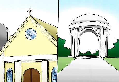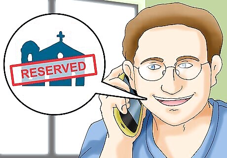 Research venues in your area. Unless you already know exactly where you want to get married, you will need to do some research to find a good venue. Start by doing an online search for venues that match your criteria and fit your budget. Make a list of a few of your favorite options, and contact them for details on pricing, amenities, and how to make reservations. You need not feel restricted to traditional venues, such as a cathedral or banquet hall. You can also get married in a hotel, a park, a museum, a restaurant, or even a barn! Some venues may provide their own music, lighting, catering, or other services. Check with each venue to make sure you are on the same page about what you are providing versus what they are providing. If you can, visit each potential venue in person well in advance of the wedding to make sure they match your expectations.