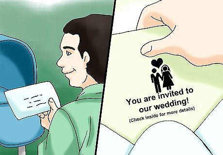 Follow up with formal invitations 8 weeks before the wedding. Once the wedding is about 2 months away, send out invitations to all the people on your guest list. Make sure you include the place, date, and time of the ceremony and reception, as well as the names of the people you are inviting. If you don’t have a big budget for wedding invitations, you can save money and add a personal touch by making your own. Your invitations should also include RSVP cards and additional important information, such as dress code and menu options (if applicable). As you receive RSVPs, keep track of them on your guest list.