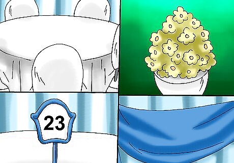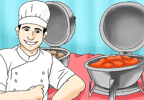 Make arrangements with caterers. Assuming your venue doesn’t already provide food and beverage services, you will need to book your own caterers and bartenders. Do an online search for caterers in your area, or try a site like WeddingWire.com or Thumbtack.com to help you find someone who meets your needs. Start meeting with potential caterers around 8 months before the wedding. In addition to finding out about prices, make a list of any other questions you might have for potential caterers (e.g., if they can accommodate guests with food allergies or dietary restrictions).