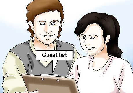 Finalize your guest list. Go through the list of guests that you and your future spouse put together, and decide if there is anyone else you would like to add to (or cut from) the list. Make sure you have up-to-date contact information for everyone on the list. As you continue the planning process, you can use this list to keep track of information such as which guests still need invitations and who has already RSVP’d. Try to have your final guest list written up by at least 9 months before your wedding date.