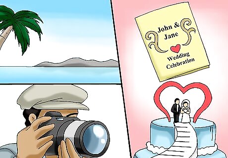Set some spending priorities with your partner. Have a conversation with your partner about what aspects of the wedding are most important to each of you. Each of you can start by writing down a list of “must-haves” and narrowing them down to your top 3. Then, put your 2 lists together and see if they work together. This will help you determine where you want to spend the bulk or your budget. For example, maybe your top priorities are to have a beach wedding, hire an excellent photographer, and have a live band at the reception. Your partner might want to splurge on the perfect tuxedo, keep the guest list as small as possible, and have their best college buddy in the wedding party. You can also make a list of things you’d like to have, but don’t consider necessary (e.g., professionally hand-lettered invitations or a cake designed by a particular baker).