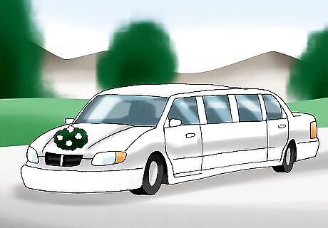 Arrange transportation to and from your venue(s). About 6 months before the wedding, book transportation for yourself, your future spouse, and the wedding party. If you are having your ceremony and reception at separate locations, take this into account when setting up your transportation. Limos and town cars are popular options for wedding transportation. If you have a large wedding party, a trolley car can be a fun way to go.