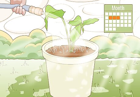Water your outdoor plants every 2-3 days. Moving the plants outdoors is essential once the leaves have grown, as the plant will need sunlight. Nelson advises watering the plant as you usually did indoors to keep it from drying out. If the plant doesn’t get enough water, it will start to die. Use the mist setting on your garden hose to water your plant to avoid damaging the leaves.