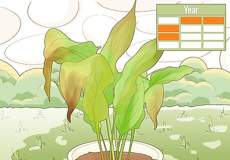 Wait 6-10 months for your turmeric to grow. Your turmeric will begin to sprout after 6-10 months of watering in a warm climate. Once you see a stalk start to stick out of the planter or pot, it has begun to grow into a mature plant. Leave your turmeric plants where they are until the stalks grow to 4–8 inches (10–20 cm) in length.