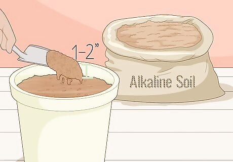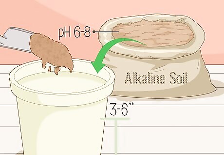 Fill a planter with 3–6 inches (7.6–15.2 cm) of potting soil. Look at the label on a bag of soil to find a slightly alkaline soil with a pH between 6-8. Pour your soil into the planter to fill the bottom third of your container. You do not need to pat the soil down, but you can shift it around with your hands so that it’s flat if you’d like to. Landscaping Expert Jovace Nelson recommends getting posts that are at least 12 inches (30 cm) deep and 12–18 inches (30–46 cm) wide. Once you plant your rhizomes, they’ll need plenty of space in the pot to grow. Turmeric can grow up to 3.5 feet (1.1 m) tall, so choose a pot that will be big enough to support it as it grows. If you’re planting your turmeric outside, consider using a planter’s box to ensure the rhizome has enough space to grow. A simple box with a depth of 1–2 feet (0.30–0.61 m) should be more than enough. pH refers to the acidity level in the soil. Turmeric grows best in slightly acidic soil.