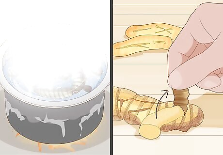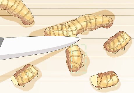 Boil and peel a rhizome to prepare it for grinding. To prepare a rhizome for grinding, boil a clean rhizome in a pot with water. Once the water reaches a rolling boil, turn it down to a simmer. After 45-60 minutes, drain the pot in a colander or strainer. You can rub the skin off of the rhizome after boiling it, although it’s perfectly fine to leave it on. If a fork easily pierces it after boiling, the rhizome is ready for grinding.