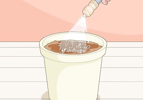 Water your pots or planters thoroughly until the soil is visibly wet. Fill a water sprout or large cup with tap water and pour it liberally across the surface of your pot or planter until you’ve gotten each section of the soil wet. Water until the soil is visibly moist. Nelson recommends doing this slowly to avoid drowning your rhizome. Make sure there is a base for your pot or planter if it has drainage holes at the bottom to avoid making a mess.