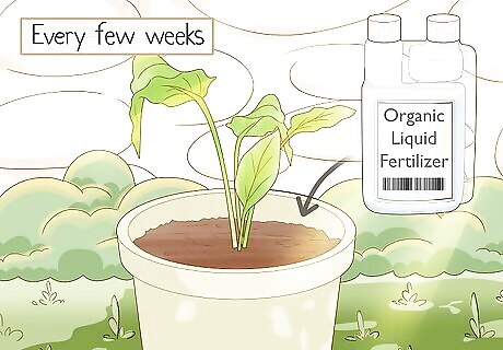 Add organic fertilizing to the soil every few weeks. Once turmeric actively grows, it becomes a heavy feeder. Opt for a soil mix rich with organic matter and feed it with quality compost. Then, every few weeks, add worm casings, organic liquid fertilizer, granular organic fertilizers, or compost tea to keep it growing strong and healthy.