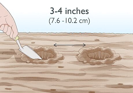 Dig holes to fit the root ball or bulb. Oxalis look better in groups so it's a good idea to plant multiple bulbs or plants in your garden. When planting multiple Oxalis bulbs or plants, make sure to space them 3–4 inches (7.6–10.2 cm) apart. Continue to dig small holes until you have enough to house all of your Oxalis bulbs or plants.