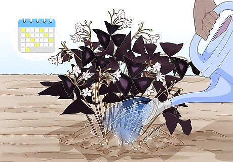 Water the plant every 2-3 days. Regularly water your Oxalis plant so that the first 2 inches (5.1 cm) of surface soil is moist. If your Oxalis are outside and you get very little rainfall in your area, you may have to water them every day. However, it’s important not to overwater the plants or leave them in standing water.