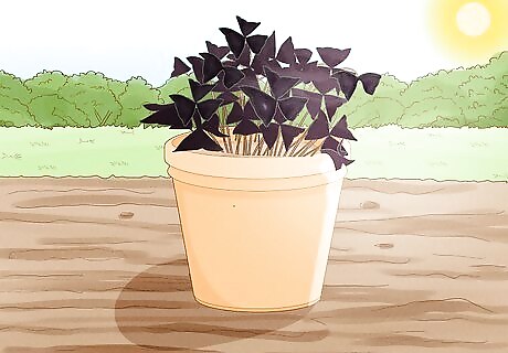 Place the pot in a sunny area. While Oxalis will survive in the shade, they thrive in the sun. Place the pot or container in a well-lit area that gets plenty of sunlight.