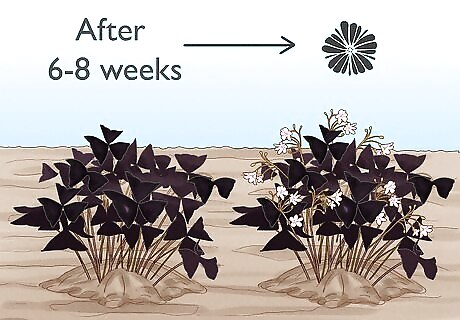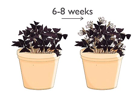 Wait 6-8 weeks for the Oxalis to bloom. Oxalis flowers and leaves should open up during the blooming season. Continue to regularly care for your plants by watering them and feeding them with fertilizer until the blooming period is over.