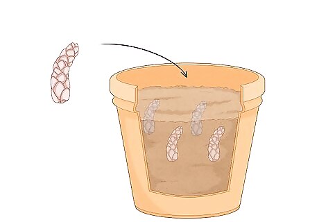 Place the bulb or plant in the hole and cover it up. You can get an Oxalis plant by digging up an existing Oxalis plant and dividing it. Alternatively, you can plant a bulb from an Oxalis plant. Both plants and bulbs are also available at gardening centers and online. Oxalis plants usually look good grouped together, so if you’re using a larger container, like an 18-24-inch (45.72-60.96 cm) diameter pot, use more than 1 bulb or plant. You can plant up to 10 bulbs in a single container. Oxalis will grow regardless of the bulb's position.