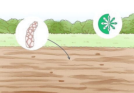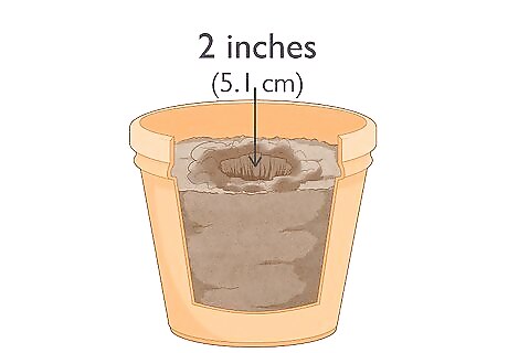 Dig a hole large enough for the root ball or bulb. Use a small spade to dig a hole deep enough to fit the bulb (2 inches (5.1 cm)) or the root ball.