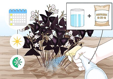 Fertilize the plant with diluted liquid fertilizer every two weeks. Oxalis are resilient plants and don’t require a lot of fertilizer or special attention. However, if you want to promote flowering and growth, you can apply a balanced liquid fertilizer, diluted in half, every 2 weeks during the spring and summer. You can purchase liquid fertilizer online or at a home and gardening store.