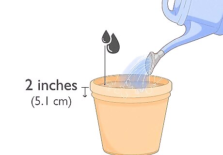 Water the soil. Water the soil above the bulb or plant, saturating it well. Wait for the soil to dry out before watering the soil again. The top 2 inches (5.1 cm) of the soil should be moist after every watering. You can test this by pressing your finger into the soil and making sure the top 2 inches (5.1 cm) are moist. Oxalis should never sit in standing water.