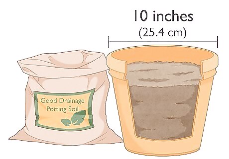 Fill a 10-inch (25.4 cm) diameter pot with soil. Purchase a pot or container with drainage holes. Oxalis thrives in well-drained soil like loam or peat moss, but is resilient and will grow in almost any potting medium. Fill the pot about ¾ of the way with the soil. You can purchase potting soil at a hardware store, gardening store, or online.