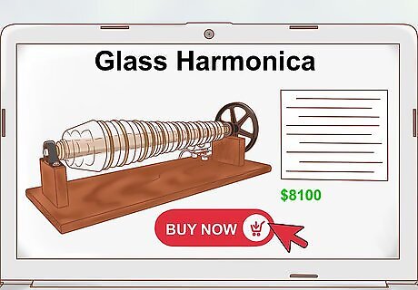 Buy an instrument. In the 21st century, finding an instrument to play can be a challenge. But it is not impossible. Purchase a glass harmonica online. One of the last manufacturers of modern-day instruments is G. Finkenbeiner, located in Waltham, MA. According to their catalog, prices for a glass armonica begin at just over $8100. If you don't have thousands of dollars to spend, there are alternatives.