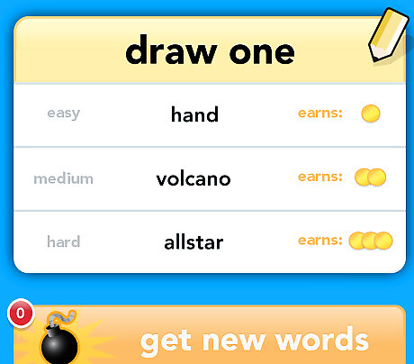 Choose the difficulty of your drawing. Each drawing "level" will come with coins; the more coins the word is worth, the harder it may be to draw and successfully guess correctly by the other person.