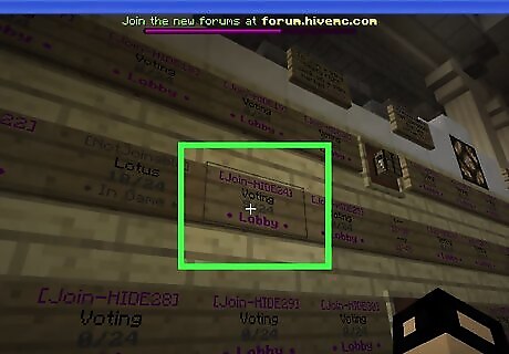 Join a game and you will be put in the lobby that's not a lobby. It looks like an Olympic court. Anyway, if you got the compass, select which block you want to be after the world vote. If you are early you vote for what land to hide in. After a few seconds, the game will begin.