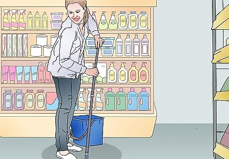 Clean up the floors. Vacuum the carpet, take out rugs and shake them, and sweep up the aisles.
