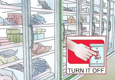 Start shutting of the lights in the frozen/refrigerated aisles. The lights switches are usually alongside the door or the side of the shelves.