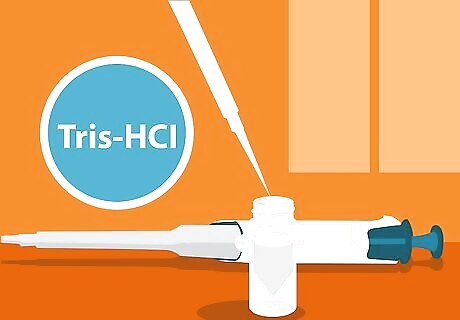 Add the necessary quantity of 1.5M Tris-HCI pH 8.8. Again, use a fresh pipette and be careful to add the precise amount. The addition of Tris-HCI will ensure that the intermingled components in your gel mixture remain at a constant pH. Tris-HCI (short for "tris(hydroxymethyl)aminomethane hydrochloride") is a type of buffer commonly used in chemical procedures and experiments.