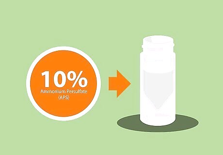 Infuse 10% ammonium persulfate (APS). APS is a powerful oxidizing agent frequently used as a co-catalyst in polymer chemistry. Along with TEMED, it is essential for initiating polymerization, a complex bond-forming process that will cause the liquid mixture to solidify into a gel. For best results, prepare a fresh batch of APS solution each time you cast an acrylamide gel.