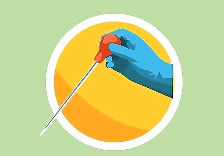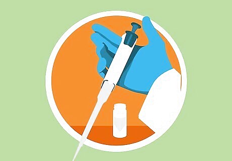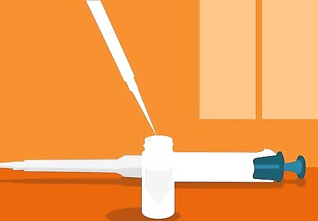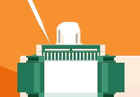 Pipe your liquid gel mixture into the opening at the top of the chamber. Use a glass pipette and bulb to add the mixture until it’s even with the indicated fill line on the outside of the glass casing. Don’t worry about any air bubbles you may see inside the casing—you’ll be dealing with them before you allow the gel to fully polymerize. If equipment you’re using doesn’t feature a fill line, measure about 1 centimetre (0.39 in) down from the top of the glass “window” visible inside the casting frame and make a mark there using a felt-tipped marker.