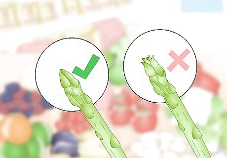Look for compact, tightly-closed tips. Inspect the tips of the asparagus bunches for dense, closed tips. Asparagus that have begun to blossom or are falling apart are not at the peak of freshness for eating.