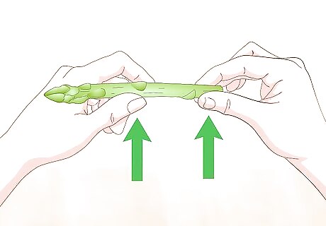 Pinch each asparagus between your fingers using both hands. Pinch your fingers around the asparagus, putting 1 pinch in the middle of the asparagus using 1 hand and the other pinch at the thick end with your other hand.