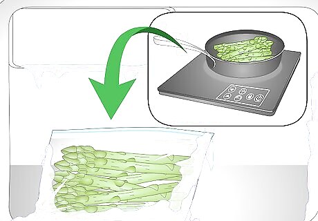 Freeze only cooked asparagus. Avoid freezing raw asparagus, as it doesn't keep well. To store your asparagus, cook it as desired and freeze it in a covered, airtight container within 2 hours of cooking. Cooked asparagus will keep for up to 10 months in the freezer. Thaw frozen asparagus in the refrigerator overnight. Eat thawed, frozen asparagus within 3-4 days.