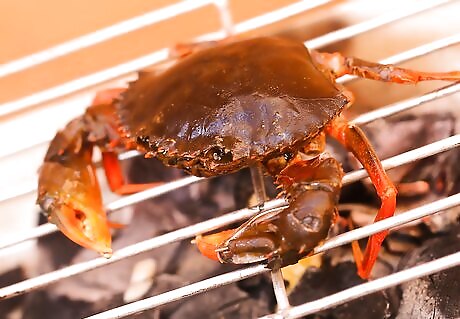 Place the crab(s) onto a grill under low/medium low heat and cook, covered, for 10 minutes.