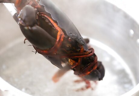 Gently drop the crab(s) into the boiling water. If you want to stun the crab before dropping it in (thus killing it more humanely), take it by its legs and gently wave its head through the top of the water for several seconds.