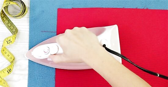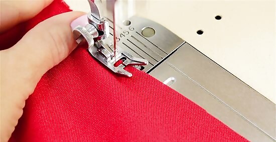 Straighten fabric grain before sewing. If the fabric has a straight horizontal pattern, simply trim both cut ends of the fabric piece along a horizontal line. If the fabric is woven, begin at 1 selvage edge and pull a few horizontal threads across the width of the fabric. Trim the fabric along this thread line. If you have not yet removed the selvage edges, make a vertical cut just beyond the selvage edge. Repeat on the other end. To check that the grain is straight, fold the fabric lengthwise so the selvage edges meet and the top and bottom are straight. If there is any distortion in the fabric, it may need to be pressed with a steam iron, working from the selvage edges to the fold.