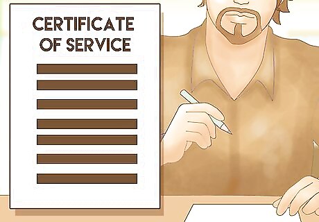 Add a certificate of service. You need to certify that you sent your answers to the other side. In some courts, you can add a certificate of service to your answers. Type this up on a separate sheet of paper and include the name of the person you sent your answers to as well as the method of service. In some courts, you might complete a Proof of Service form instead. You can typically pick this up from the court clerk.