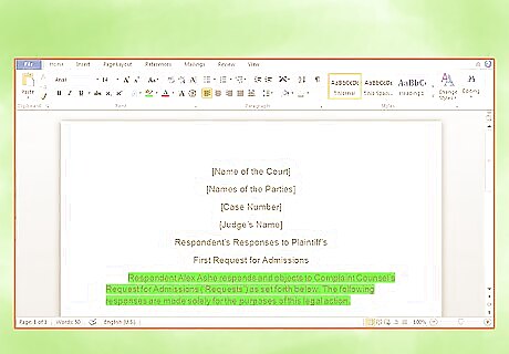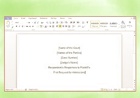 Insert the caption. The caption contains the name of the court, the names of the parties, and the case number. It may also contain the judge’s name. You can get the caption information off the Request for Admissions. Remember to title the document. You can title your answers “Respondent’s Responses to Plaintiff’s First Request for Admissions.”