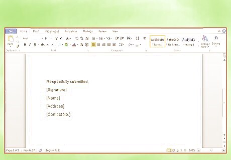 Sign your document. You don’t need a conclusion. Instead, simply insert the words “Respectfully submitted” and then include a signature line. Beneath the signature line, put your name, address, and contact information. Include the date.