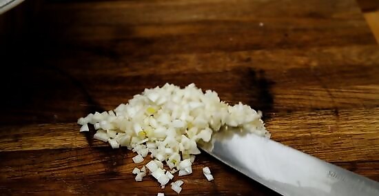 Peel and mince 3 cloves of garlic. Remove the outer skin from each clove of garlic by cutting the ends off of them and then using your fingers to peel the rough skin off. Use a sharp vegetable knife to cut the 3 peeled cloves into tiny pieces. The smaller you mince the garlic the better, as it will spread more evenly throughout your dish and give the dish more flavor. Set the minced garlic aside when you’re done.