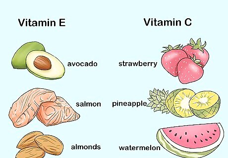 Eat a nutritious diet. Fill up your plate with fresh vegetables and fruits over the course of the day. To verify that you are getting enough vitamins, ask your doctor to complete a vitamin blood test. In particular, keeping your vitamin C and E levels high enough can help to fight off cellulitis. Almonds, peanuts, salmon, and avocado are all excellent sources of vitamin E. Strawberries, watermelon, and pineapple are all great sources for vitamin C. Your doctor can also suggest vitamin supplements if your diet alone isn’t providing enough nutrients.
