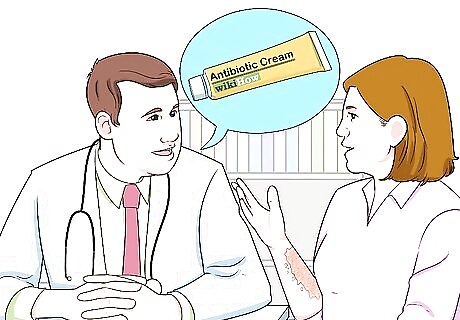 Talk with your doctor at the first signs of infection. If you notice that a spot on your skin is consistently red and feels hot to the touch, it might be infected. Monitor existing wounds for a change in color or the development of colored pus or clear/red drainage. Act fast if you notice these symptoms because it’s easier to fix an infection early on. It’s also important to act fast because certain skin infections, such as athlete’s foot, can spread from person to person. Your doctor will likely re-clean the wound and may give you’re a prescription for an oral antibiotic and antibiotic cream.