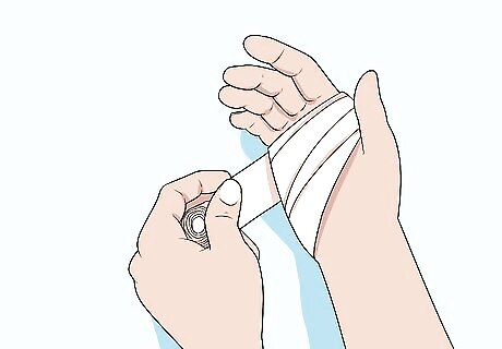 Cover it with a clean bandage. When you are satisfied that your injury is clean, place a bandage on top of it. Secure this bandage with a medical tape or with its self-adhesive tabs. Change your bandages out as soon as they get soiled or at least twice daily. This will keep bacteria from entering your wound and potentially causing cellulitis. After each changing, let your wound air out for at least 1 hour. Keep it clean during this period and avoid doing any activities that might expose the wound to dirt or germs. You can stop covering your wound whenever it no longer weeps into the bandage. Or, you can wait until the wound is starting to scab over and form a new layer of skin.