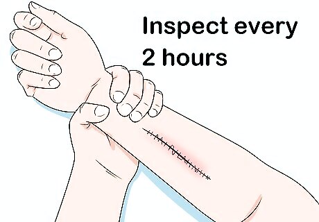 Monitor closely any surgical incisions. In the first few days after surgery, inspect your surgical cuts or punctures at least every 2 hours. Talk with your doctor about when you can space out these inspections. Look for a red rash, obvious veins, pus, or weeping from the incision.