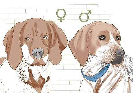 Get dogs of the opposite sex to discourage fighting. In a pack in the wild, males and females would form separate groups. Therefore, in a home, they're less likely to fight than 2 males or 2 females. When looking for dogs, think about picking one of the opposite sex to bring into your home. If you have more than 2 dogs, try keeping the males and females even.