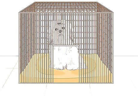 Crate your dogs when you're not around. While some people consider crates cruel, most dogs feel safe and secure in their crates, as it acts as a den for them. Plus, crating will keep your dogs from acting aggressively toward one another when you're not there to stop it. Make sure a crate is just big enough for your dog to stand up fully, sit up, and lay down. If it's too big, it won't feel secure, but you don't want your dog to feel uncomfortable. Crate training can also help you housebreak a dog, and it can be a good way to break up fights if you send the dogs to separate crates. If you don't want to use crates, try leaving your dogs in separate rooms.
