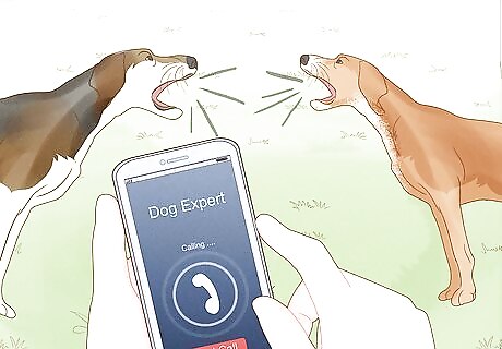 Consult an expert if the dog fighting continues. If you end up having to take one of your dogs to the veterinarian because of a fight, it may be time to call in expert help. An expert will observe your dog's behavior and give you tips on how to prevent fights. They can also help you to train your dogs to follow commands. To find a trainer or dog behaviorist, ask your vet for a recommendation or look up reviews online.